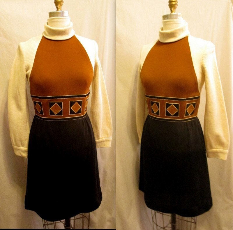Vintage 60s 70s Knit Dress Disco Era Color Block Design With Etsy Australia